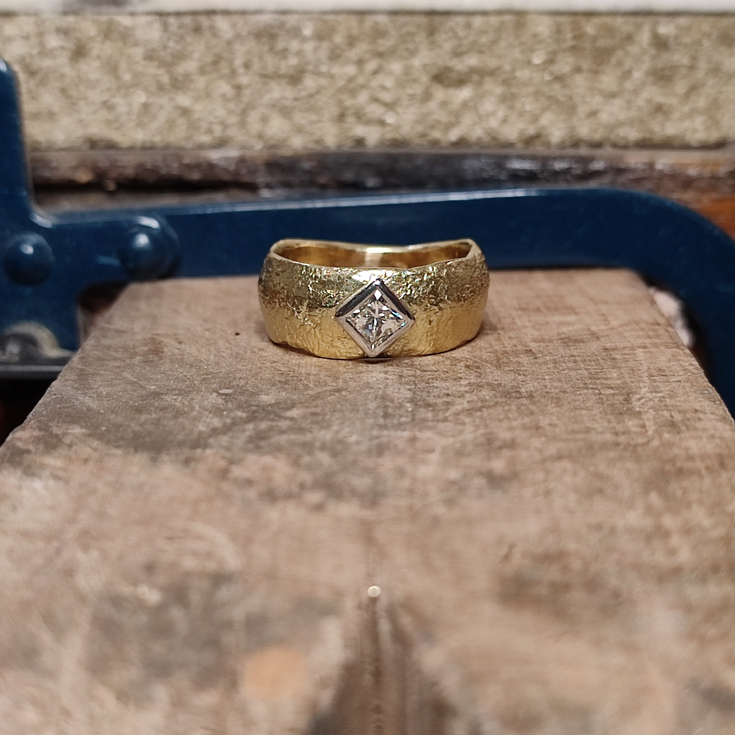 'Pie Dish' Medieval style ring with 0.55ct Rough Diamond Octahedron ring
