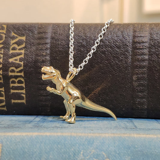 Sterling Silver Gold Plated Dinosaur Pendant T-Rex