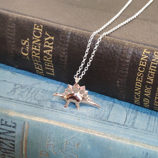 Sterling Silver Rose Gold Plated Dinosaur Pendant Stegosaurus