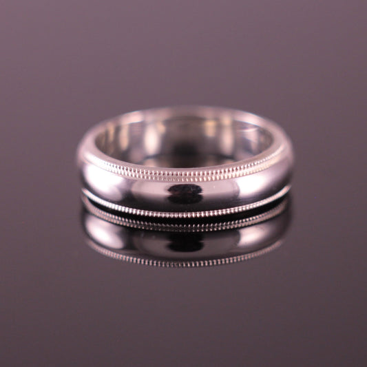 9ct or 18ct White Gold Milgrain 5mm 'D' Profile Wedding Band
