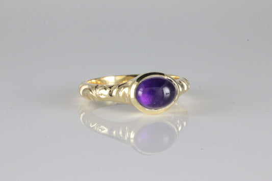 'Sostra' Victorian style Oval Amethyst Cabochon Gold Ring