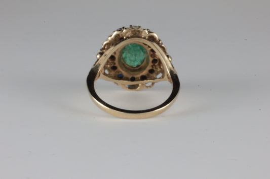 Vintage 9ct Yellow Gold Emerald & Sapphire Ring c.1982