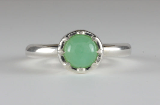 Cutdown 8-claw Georgian style Round Chrysoprase Cabochon Ring