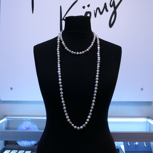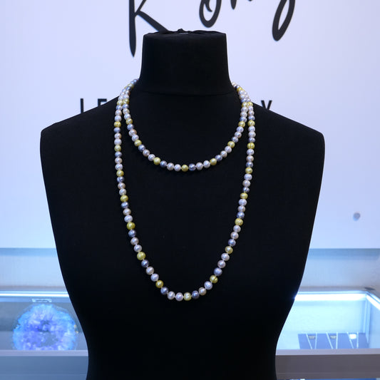 Opera Length Freshwater Pearl Necklace Endless 55" Grey, Yellow, Natural & Pink