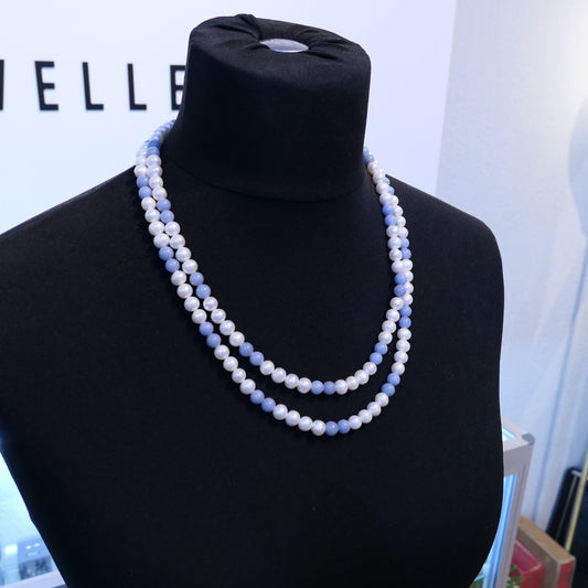 Opera Length Freshwater Pearl & Angelite Necklace Endless 47"
