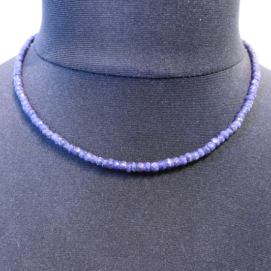 Sapphire Faceted Rondelle Bead Necklace 18"