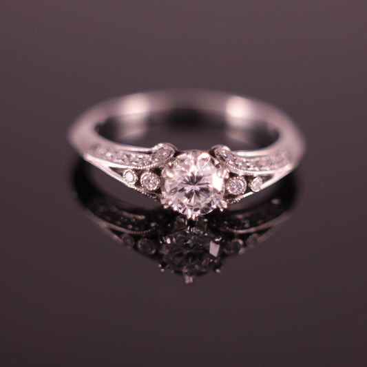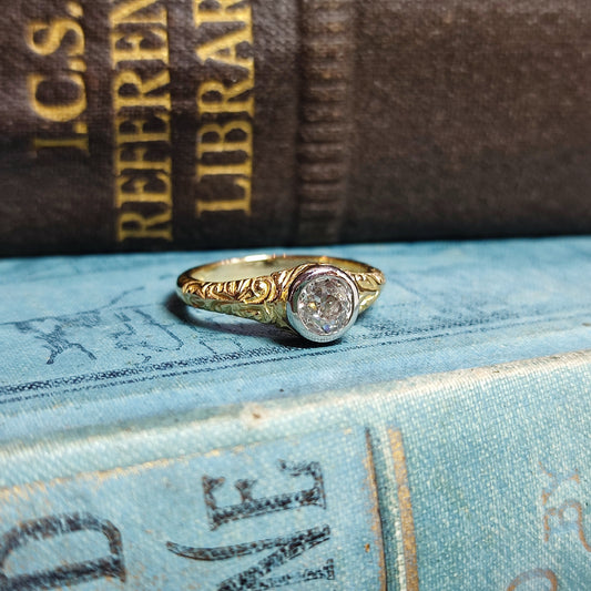 Victorian Carved Scrollwork Engagement Ring with 0.62ct Old European Cut Diamond