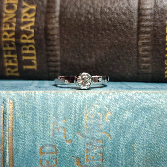 Platinum Rubover Engagement Ring with 0.40ct Diamond and Star Set Shoulders