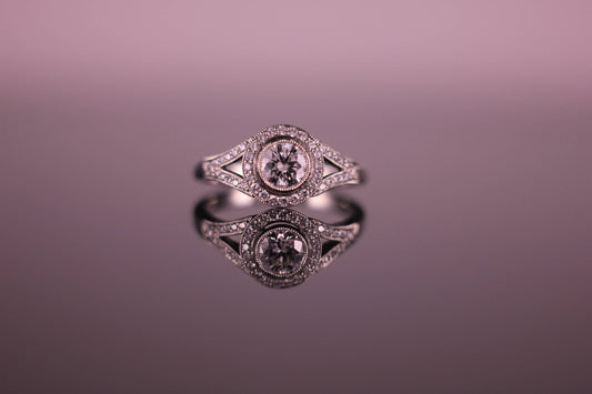 0.50ct Diamond Halo Art Deco style Ring G VS1 GIA Certificated
