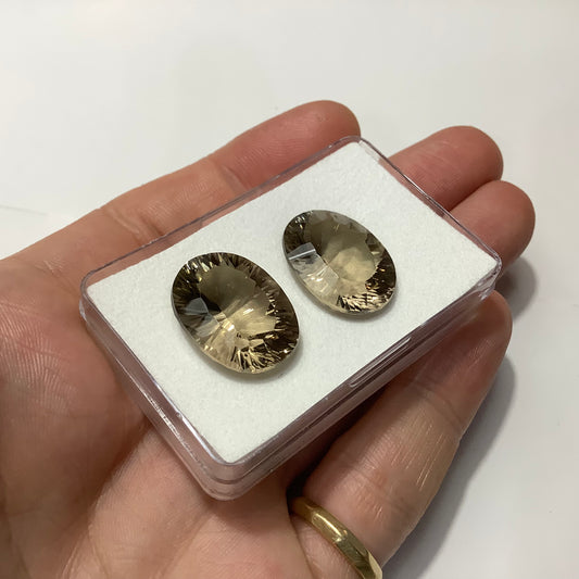 Pair of Oval Smokey Quartz Laser Cut Loose Stones 22x16mm
