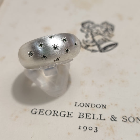 Victoriana Green Diamond Star Set Bombé Cocktail Ring in Sterling Silver