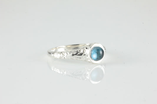 'Narona' Victorian style Round Aquamarine Cabochon Ring
