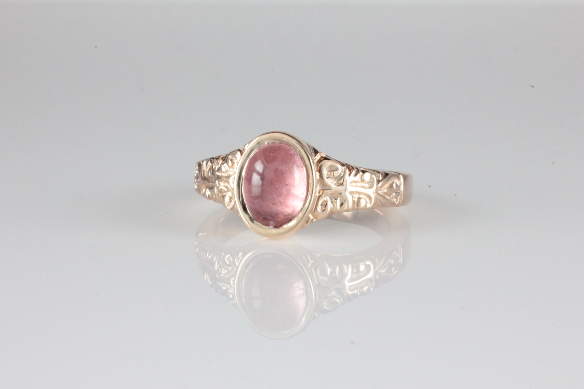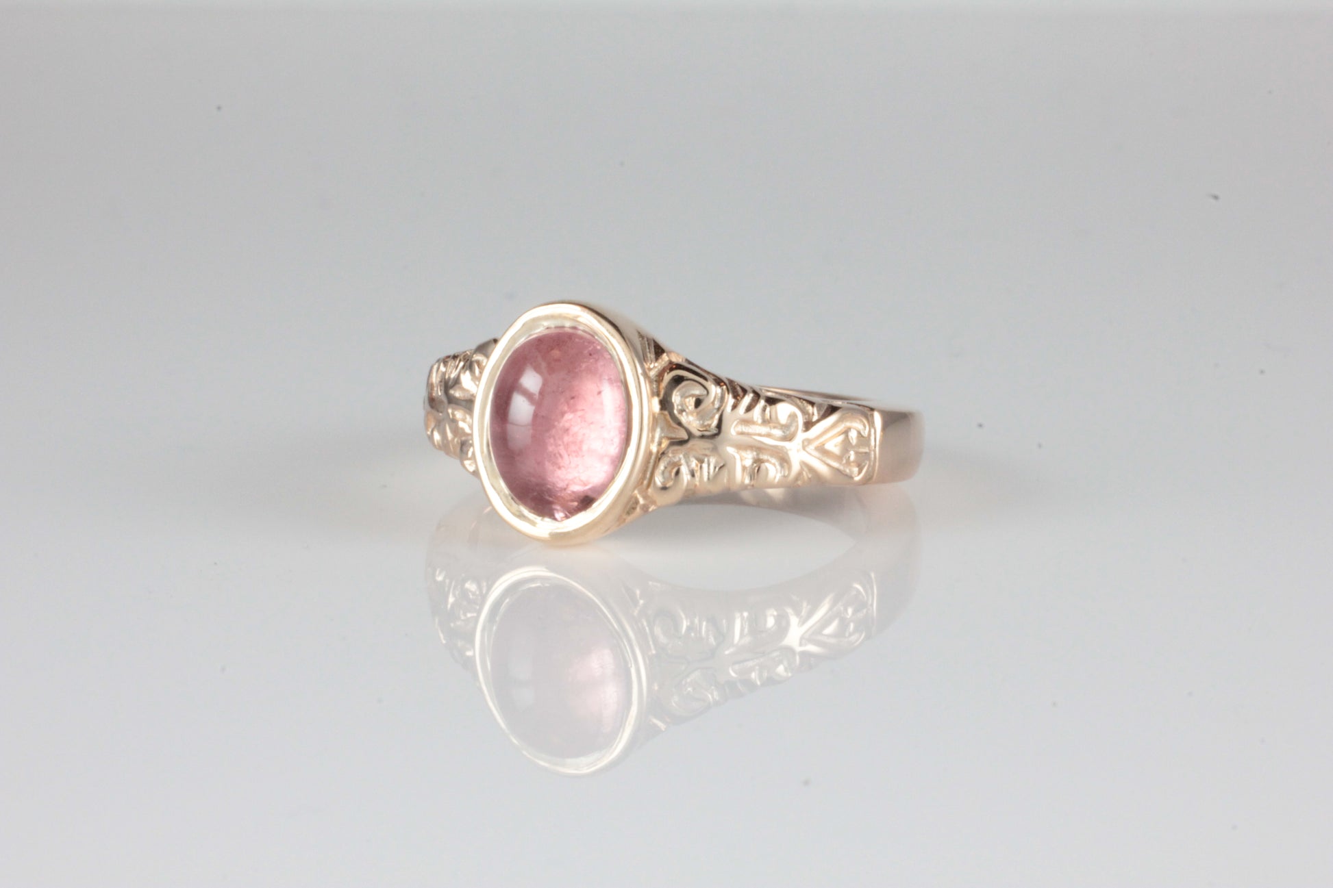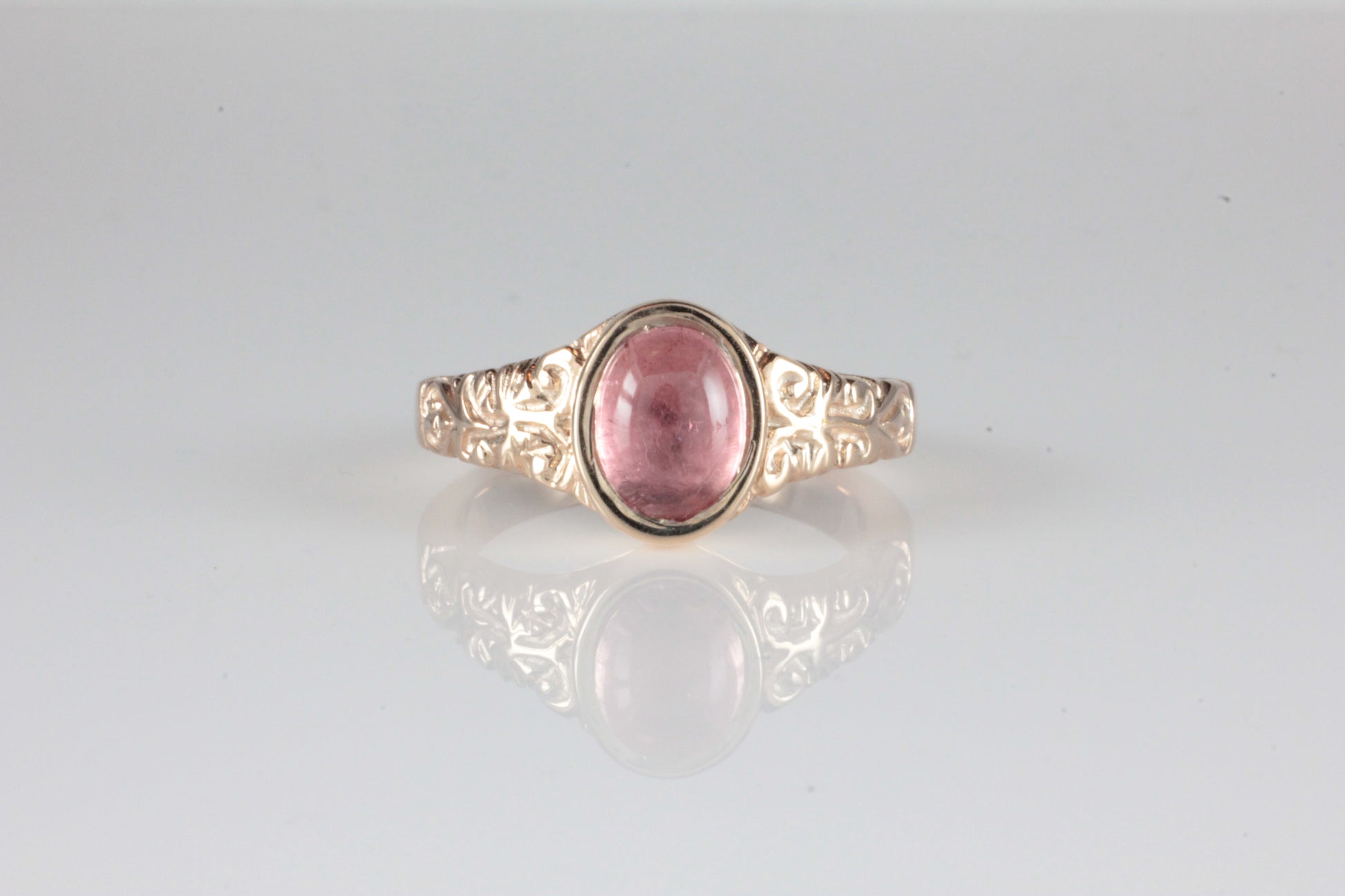 'Sostra' Victorian style Oval Pink Tourmaline Cabochon Ring