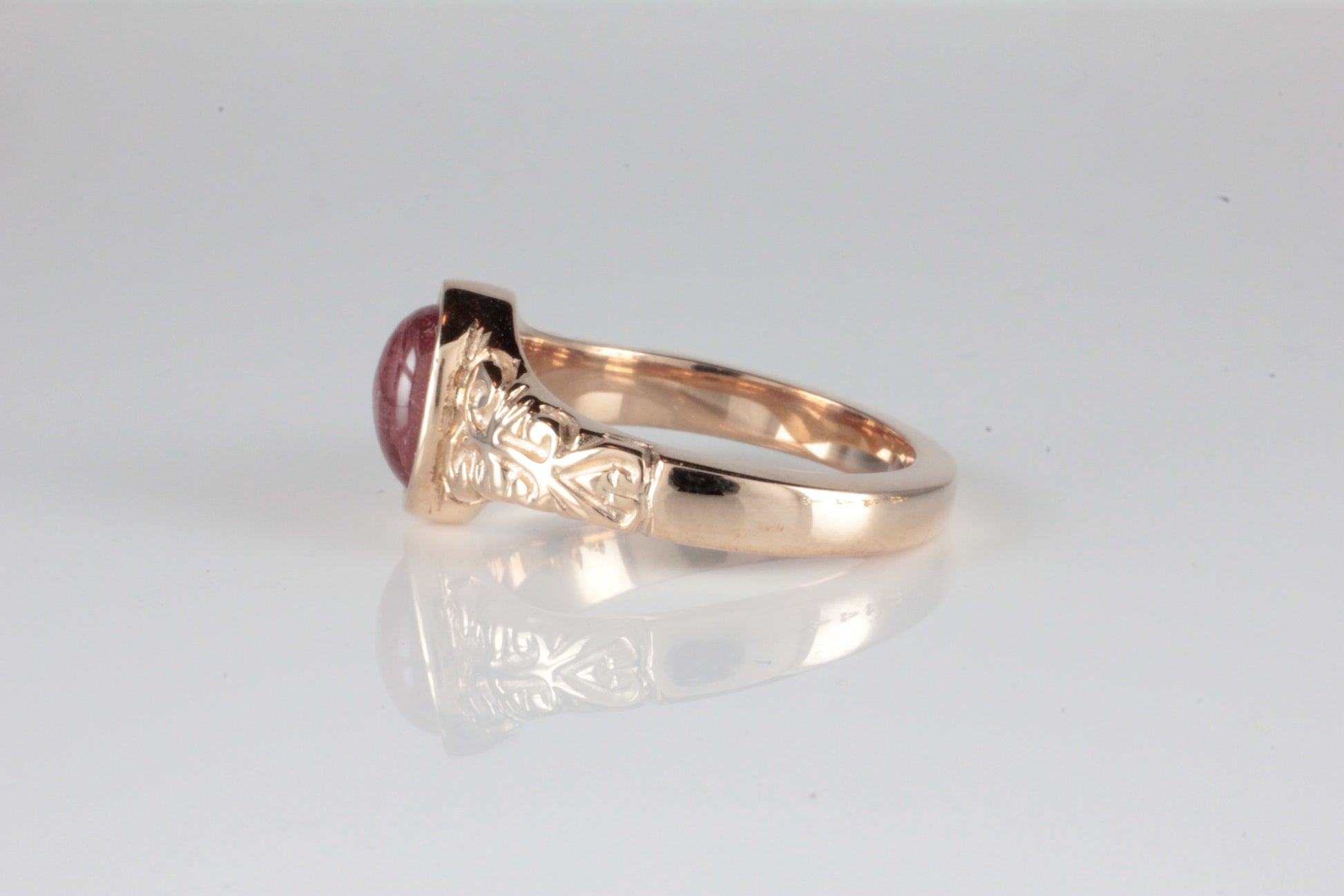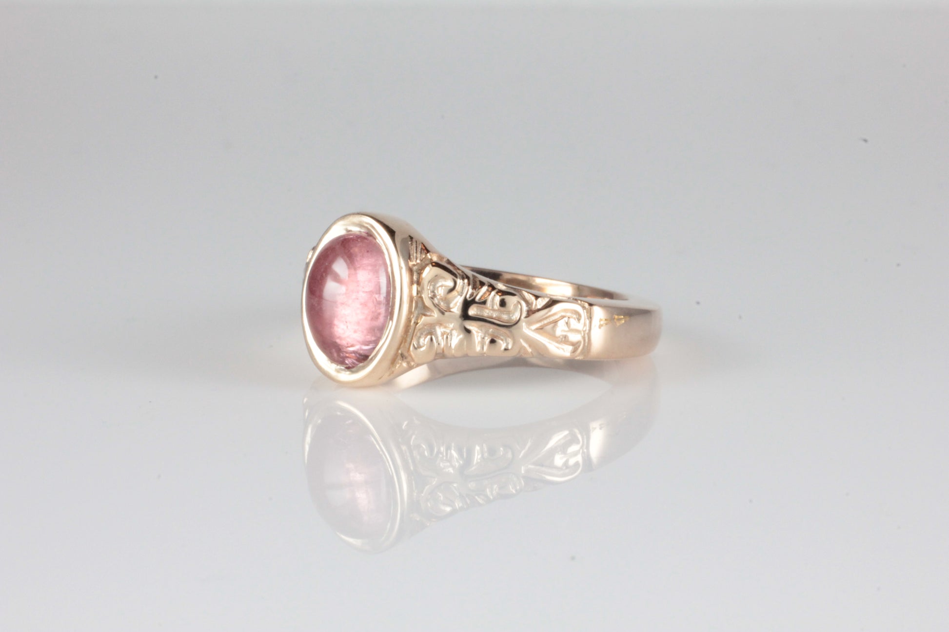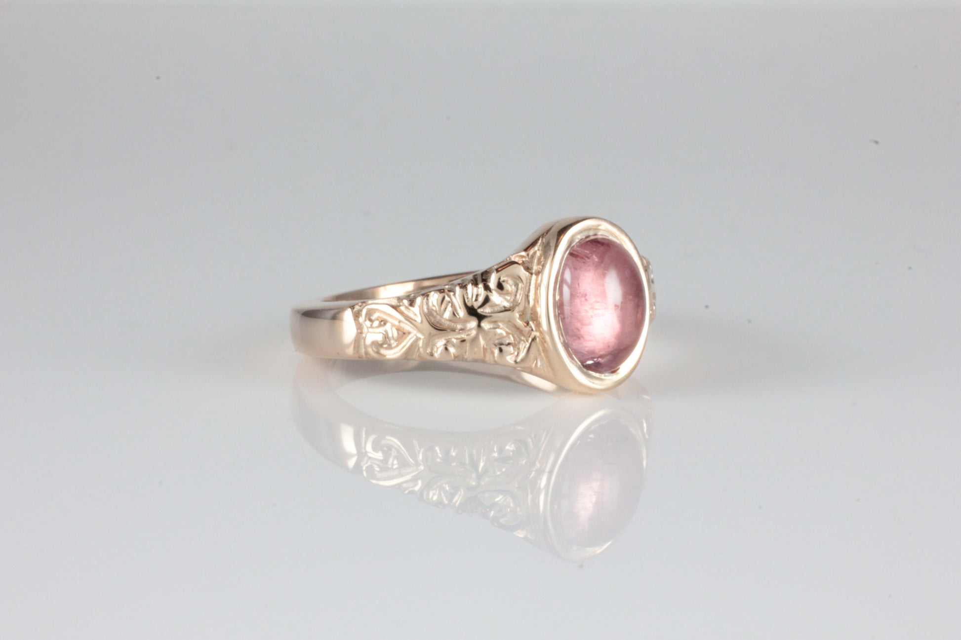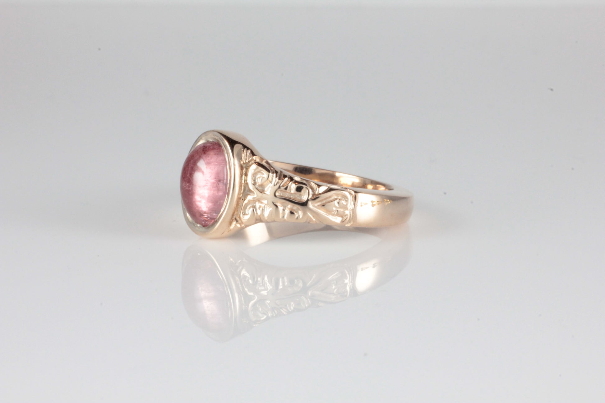 'Sostra' Victorian style Oval Pink Tourmaline Cabochon Ring