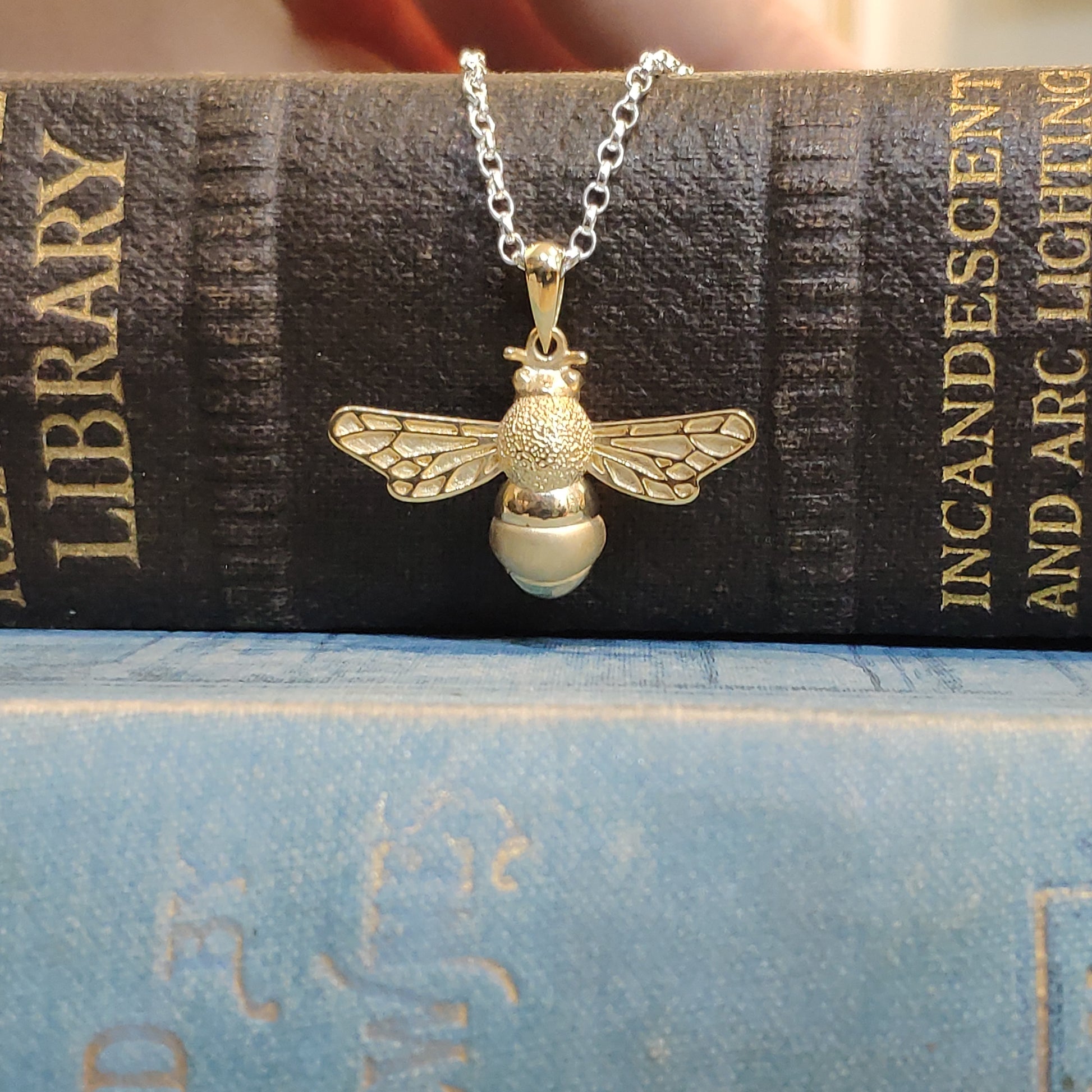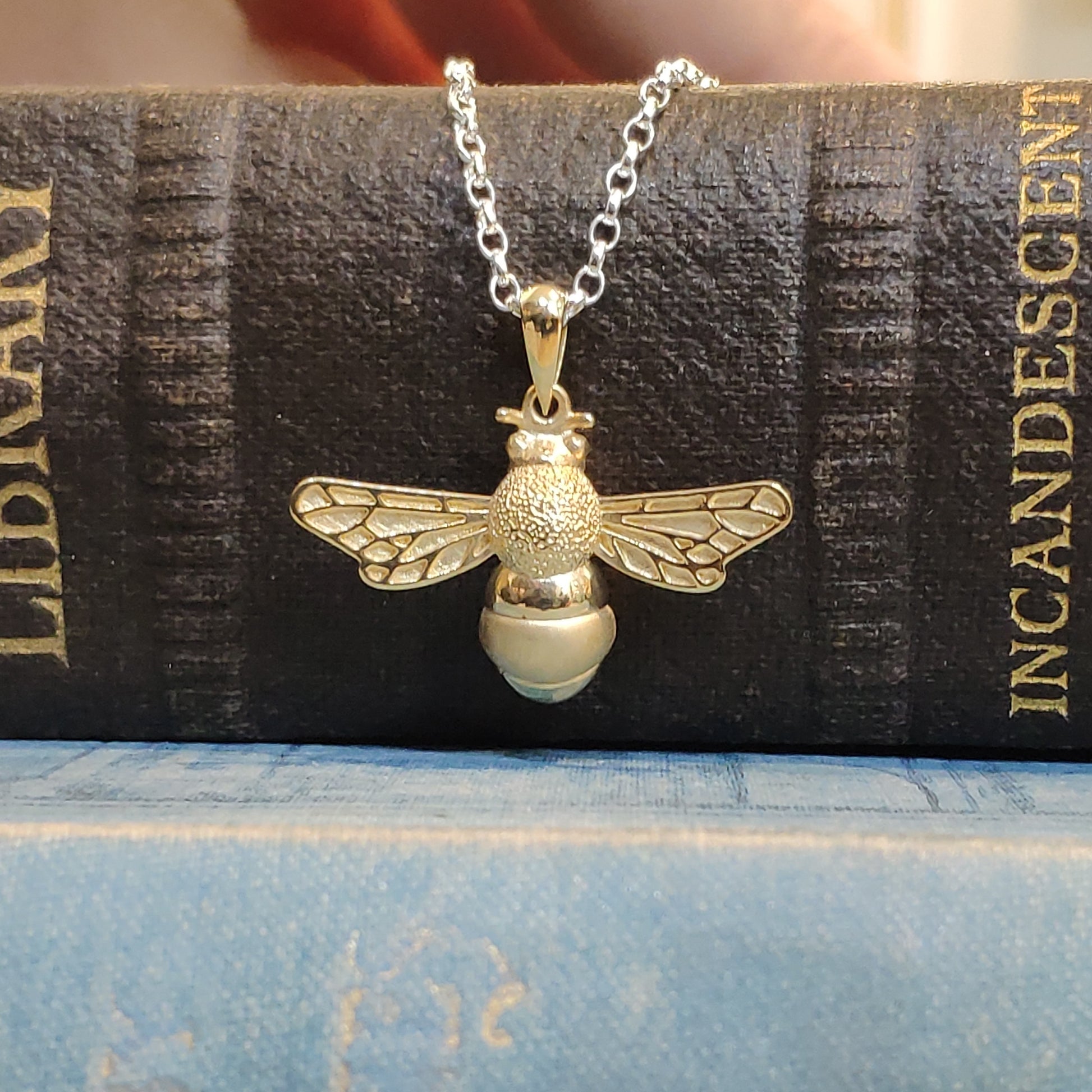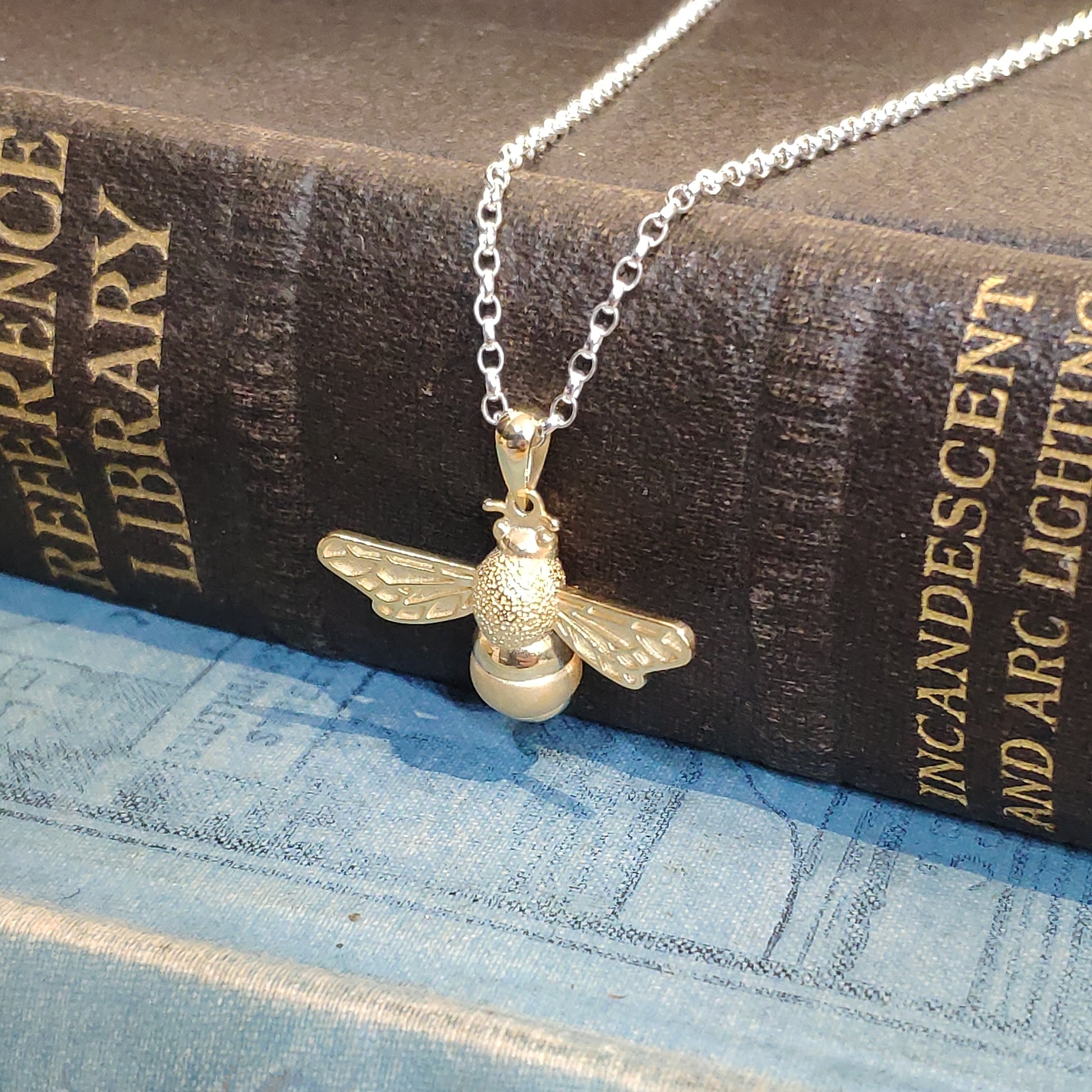 A super cute Sterling Silver Bee Pendant which is gold plated. The pendant is made of solid sterling silver and has a nice weight to it. Supplied on a good quality Sterling Silver Belcher chain of 1.7mm gauge and a length of 18". We do have other chain options, please enquire if you need thicker/longer.